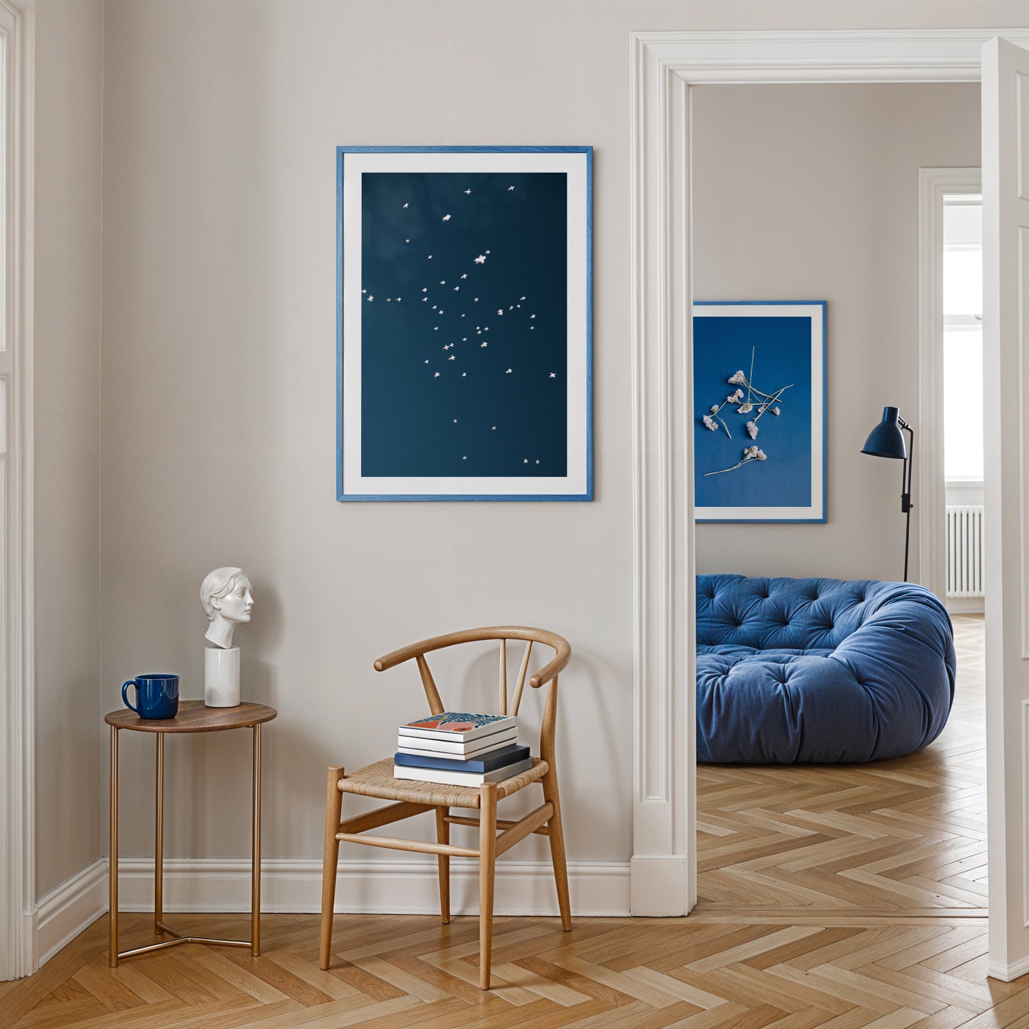 Blue is the warmest color, effortlessly pairing with beige and white to create a serene, yet vibrant art wall. Add a touch of calm vitality to your decor with this collection.